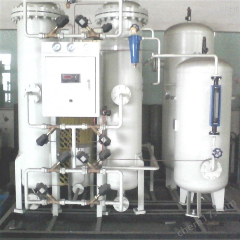 分子筛变压吸附制氧机分离空气主要由两个填满分子筛的吸附塔组成,在常温条件下,将压缩空气经过过滤,除水干燥等净化处理后进入吸附塔,在吸附塔中空气中的氮气等被分子筛所吸附,而使氧气在气相中得到富集,从出口流出贮存在氧气缓冲罐中,而在另-塔已完成吸附的分子筛被迅速降压,解析出已吸附的成分,两塔交替循环,即可得到纯度为三90%的廉价的氧气。整个系统的阀门自动切换均由一台电脑自动控制。