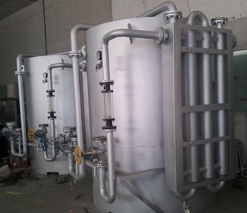 变压吸附制氧装置以洁净的压缩空气为原料,采用高品质的沸石分子筛作为吸附剂,在一定的压力下,从空气中制取氧气。经过纯化干燥的压缩空气,在吸附器中进行加压吸附、减压脱附。由于空气动力学效应,氮在沸石分子筛微孔中扩散速率远大于氧,氮被沸石分子筛优先吸附,氧在气相中被富集起来,形成成品氧气。然后经减压至常压,吸附剂脱附所吸附的氮气等杂质,实现再生。一般在系统中设置两个吸附塔,一塔吸附产氧,另一塔脱附再生,通过PLC程序控制器控制气动阀的启闭,使两塔交替循环,从而取得纯度较高的氧气(93%±3%)。