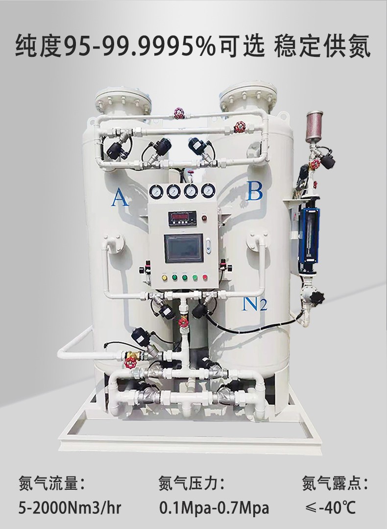 本套装置由压缩空气系统、压缩空气净化系统、变压吸附制氮系统、氮气纯化系统组成。