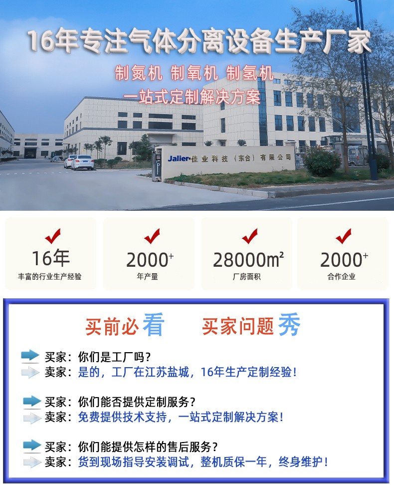 a、压缩空气系统由压缩机和空气缓冲罐组成,提供变压吸附制氮装置所需的压缩空气。工艺要求该系统提供稳定的输出压力和足够的气量。空压机选用运转可靠,维护简单,低噪音,无基础运转的空压机。