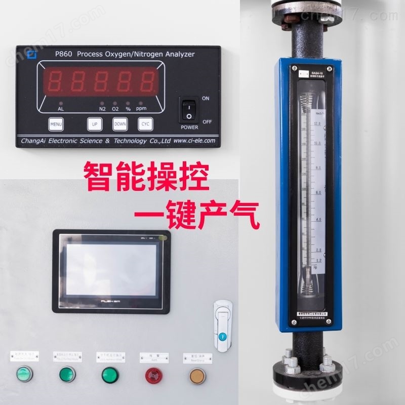两个吸附塔交替进行吸附和再生,从而产生流量和纯度稳定的产品氮气。两只吸附器的切换由PLC控制的程控阀自动完成。一台变压吸附制氮装置的性能优劣取决于吸附器、碳分子筛、工艺流程、设备结构以及电磁气动阀等部件的性能。