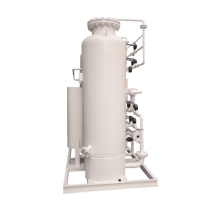 PSA制氮机是按变压吸附技术设计、制造的氮气制取设备。制氮机以优质碳分子筛(CMS)作为吸附剂,采用常温下变压吸附原理(PSA)使空气中的氮氧分离制取高纯度的氮气。通常使用两吸附塔并联,由进口PLC控制进口气动阀自动运行,交替进行加压吸附和解压再生,完成氮氧分离,获得所需高纯度的氮气。